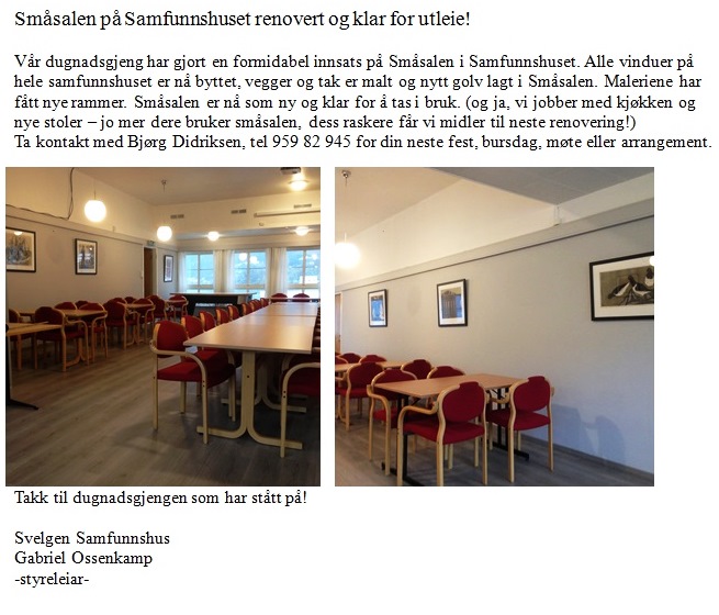 VELKOMMEN TIL SAMFUNNSHUSET!